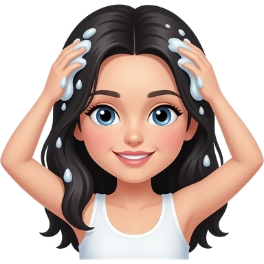 black hair girl washing hair with shampoo emoji