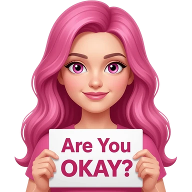 sexy girl with long pink hair and pink eyes holding a Are You OKAY? sign emoji
