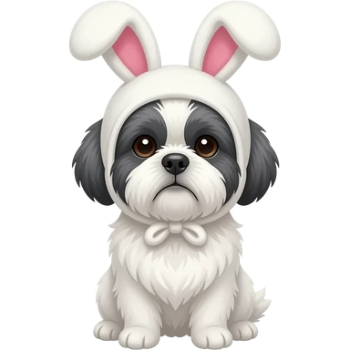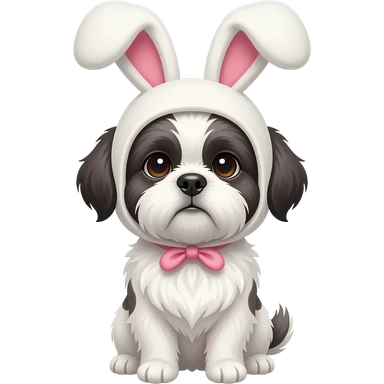 White Shih Tzu, dark ears, with a bunny hat emoji