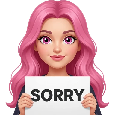 sexy girl with long pink hair and pink eyes holding SORRY sign emoji