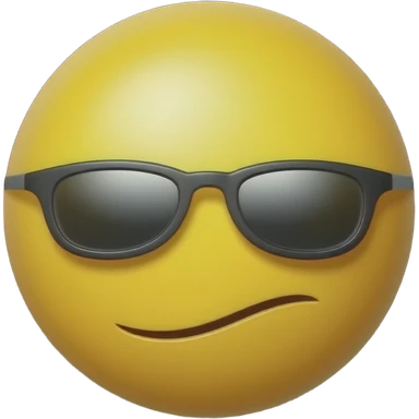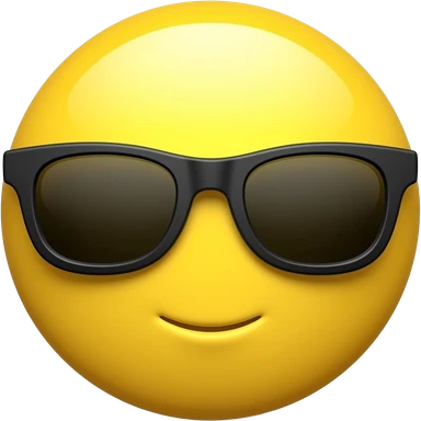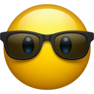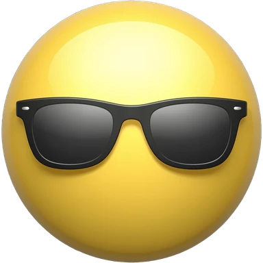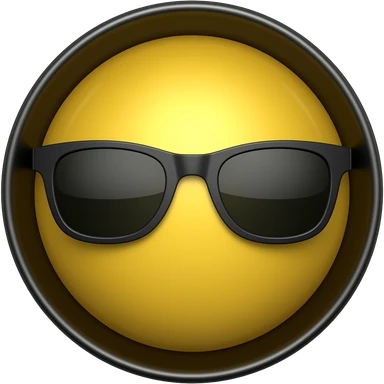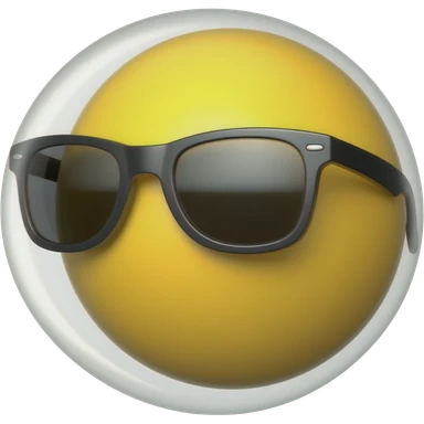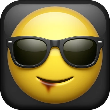 Emoji de cara redonda amarilla con gafas de sol oscuras, la luz se refleja en su superficie, . que el fondo sea negro emoji