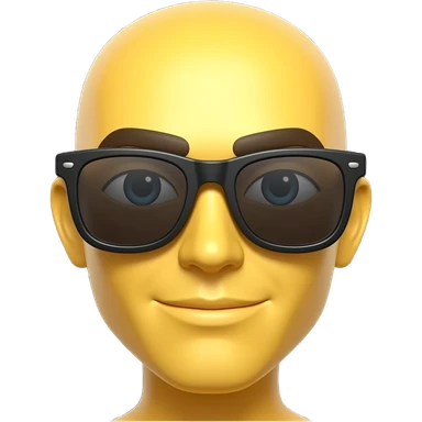 Emoji de cara amarilla con gafas de sol gira lentamente, la luz se refleja en su superficie, el fondo de cuadrΓcula transparente permanece estΓ‘tico. hacer que el emoji se vea mas moderno y que el fondo sea blanco darle un toque futurista y en 3d emoji