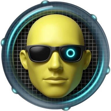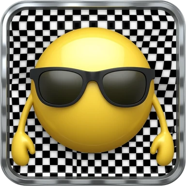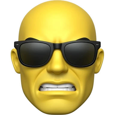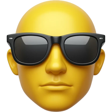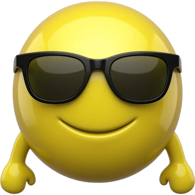 Emoji de cara amarilla con gafas de sol gira lentamente, la luz se refleja en su superficie, el fondo de cuadrΓcula transparente permanece estΓ‘tico. hacer que el emoji se vea mas moderno y que el fondo sea blanco darle un toque futurista y en 3d darle un asapecto agresivo emoji