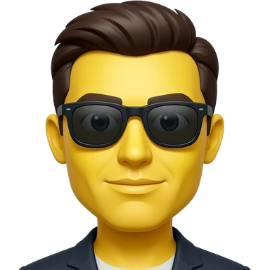 Emoji de cara amarilla con gafas de sol gira lentamente, la luz se refleja en su superficie, el fondo de cuadrΓcula transparente permanece estΓ‘tico. hacer que el emoji se vea mas moderno y que el fondo sea blanco darle un toque futurista y en 3d darle un asapecto agresivo y que de miedo emoji