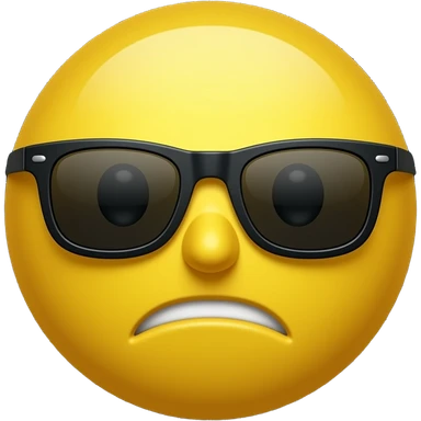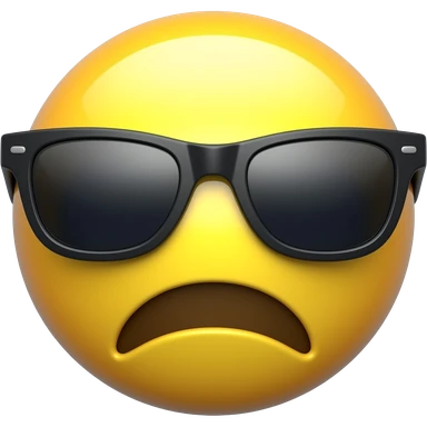 Emoji de cara redonda amarilla con gafas de sol oscuras, la luz se refleja en su superficie, . que el fondo sea negro con la boca cerrada emoji
