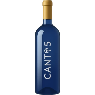 Emoji de una botella de vino de color azul entera que tenga la palabra CANTO5 a lo largo de manera horizontal en letras blancas emoji