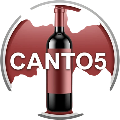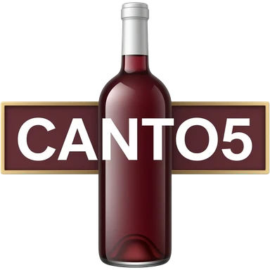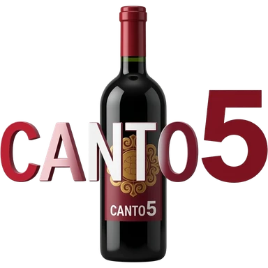 Emoji de una botella de vino de color rojo entera que tenga la palabra CANTO5 a lo largo de manera horizontal en letras blancas emoji