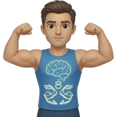 emoji symbolizing acetylcholine and what it does. Sweat, smart, muscle movement emoji