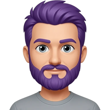 Emoji of a bearded man with purple hair and gray eyes emoji
