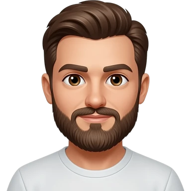 Emoji of a bearded man with brown hair and brown eyes emoji