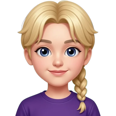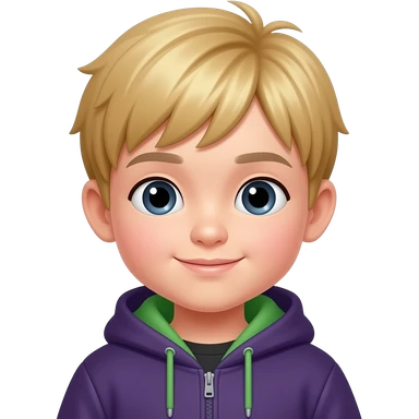 Emoji-style illustration of a young Korean boy. Cute cool expression, big expressive eyes. Light blond hair with a small side braid. Wearing dark purple (#742948) with green (#D8FFA1). Simple emoji/sticker style, clean and minimal. emoji
