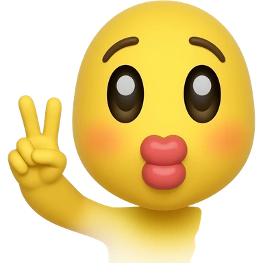 emoji yellow face alone giving a kiss and making two fingers with one hand,✌🏻two fingers, not the thumb emoji
