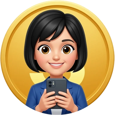 emoji women short black hair looking at phone with dollar symbol behind her emoji