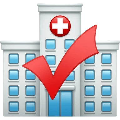Emoji del edificio de un hospital de fondo y un tick verde encima (sobrepuesto) emoji