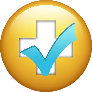 Emoji de un hospital de fondo y un tick encima (sobrepuesto) emoji