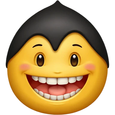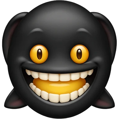Emoji padrão de cor preto com aparelho dentário bragets com os dentes a mostra bem amarelo emoji