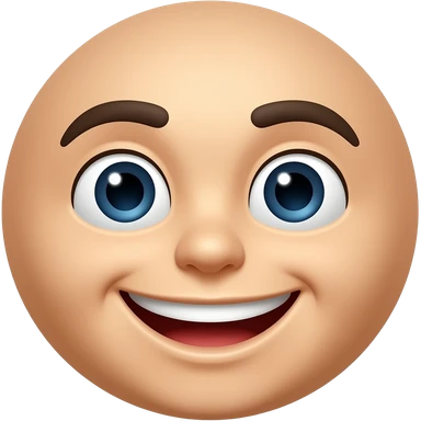 Emoji estilo WhatsApp com rosto amarelo clássico, expressão neutra com sobrancelhas muito bem marcadas, arqueadas e definidas, olhos semicerrados com leve atitude, boca com leve sorriso de confiança. emoji