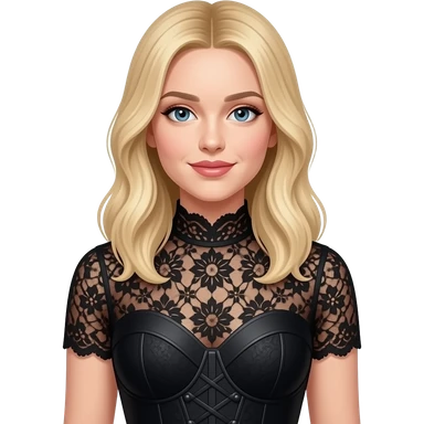Sabrina carpenter blonde hair wearing a custom, archival-inspired black lace bodysuit with a structured, sweetheart-neckline bodice. emoji