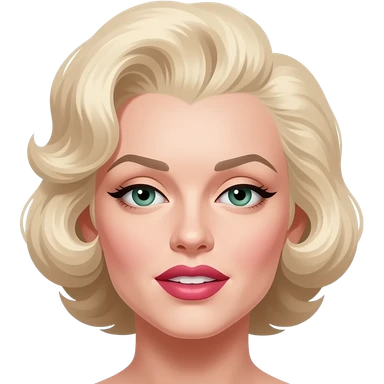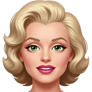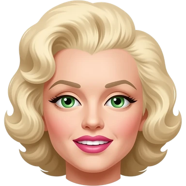 cabello de Marilyn monroe con ojos verdes parpados pintados de marron y boca pintada de rosa emoji