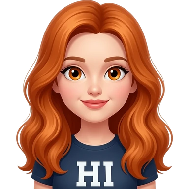 sexy girl with long ginger hair and ginger eyes a top with HI written on it emoji
