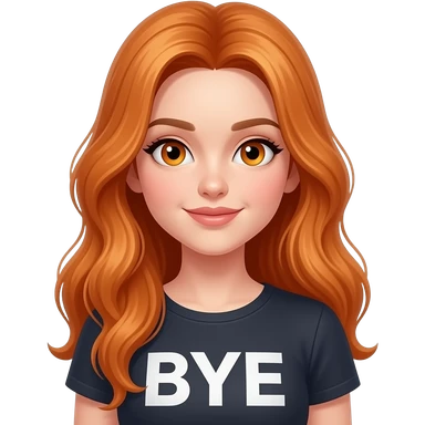sexy girl with long ginger hair and ginger eyes a top with BYE written on it emoji