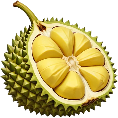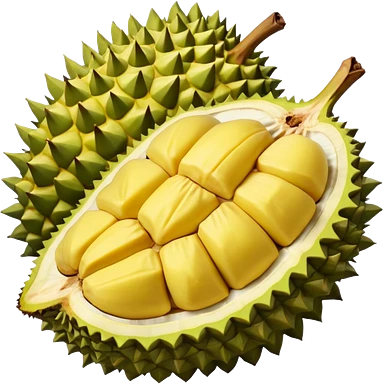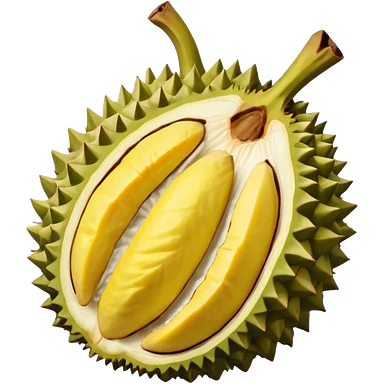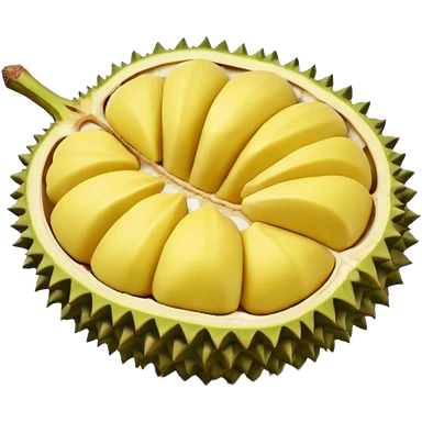 Emoji durian yg terbuka seperempat dan telihat isinya emoji