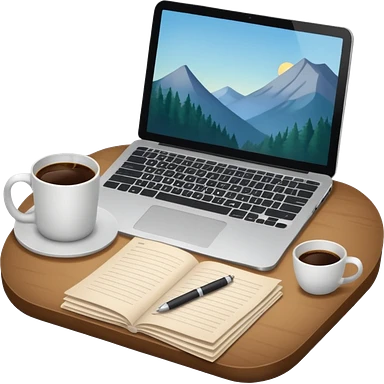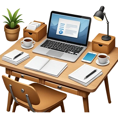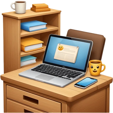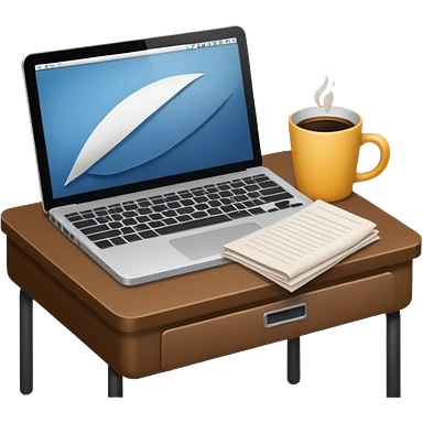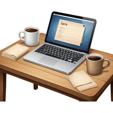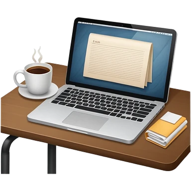 emoji of a cozy desk with a paper, a coffee, and a laptop on it emoji