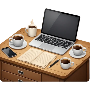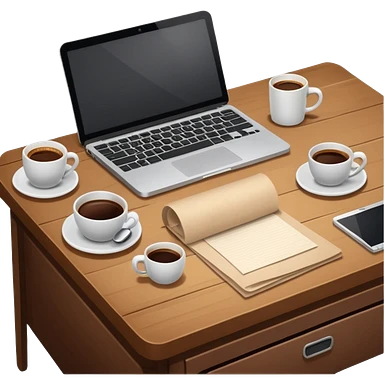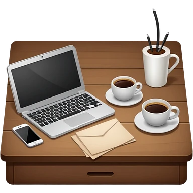 emoji of a cozy desk with a paper, a single coffee, and a laptop on it emoji