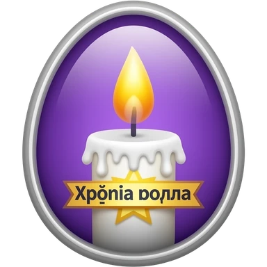 Emoji for the easter in purlpe and orange, church candle and the wish "Χρόνια πολλά" emoji