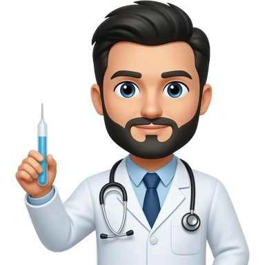 emoji Medico blanco con cabello negro y barba con sonda en la mano emoji