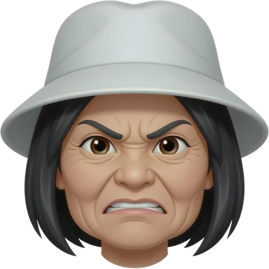 emoji of an asian angry grandma with black hair and white bucket hat emoji