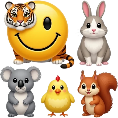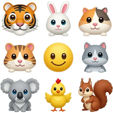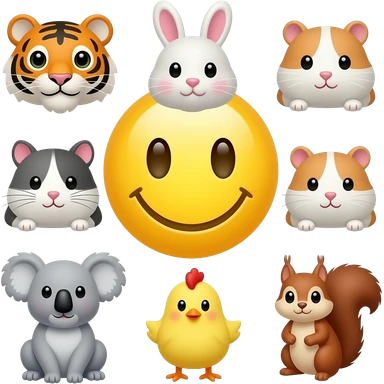 emoji yellow smiley with 🐯🐰🐹🐱🐨🐥🐿 emoji