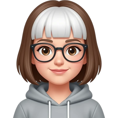 Emoji girl Brown hair with white front hair and Glasses, also in hoodie emoji