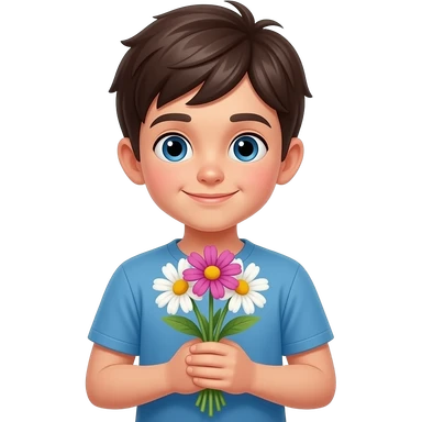 emoji of boy with flowers in has hands emoji