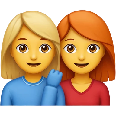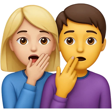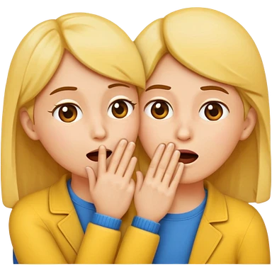 Emoji of two people, one whispering into the otherβs ear with a hand covering their mouth. Surprised reaction. Simple emoji style, flat design, bright colors, thick outlines. emoji