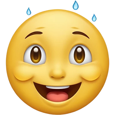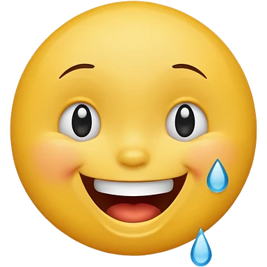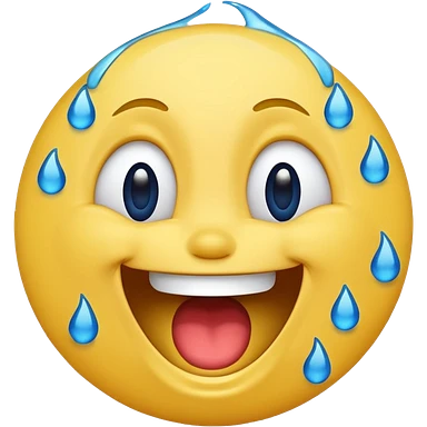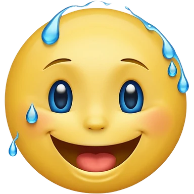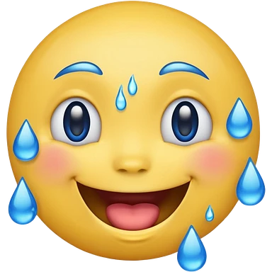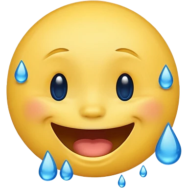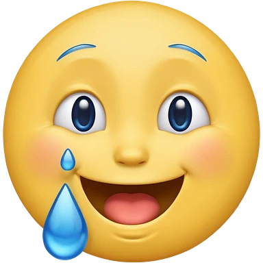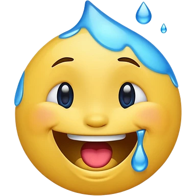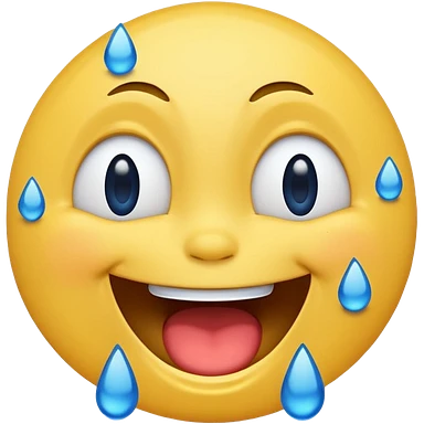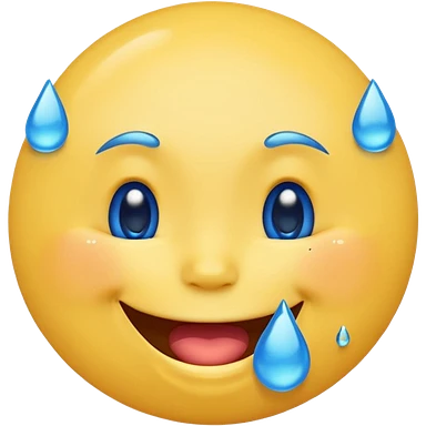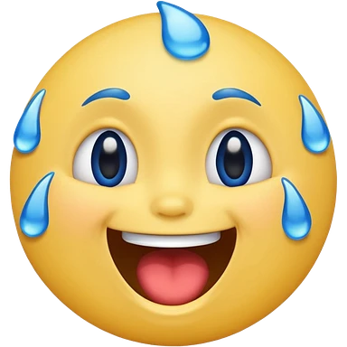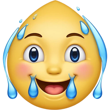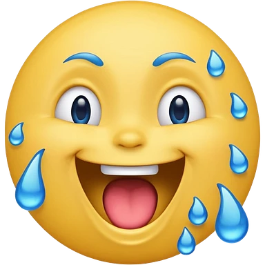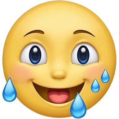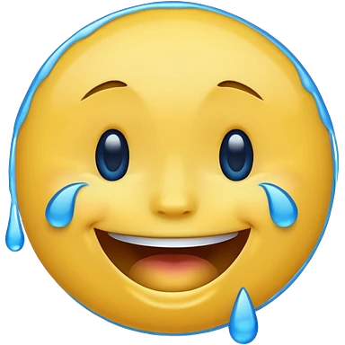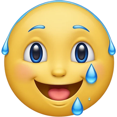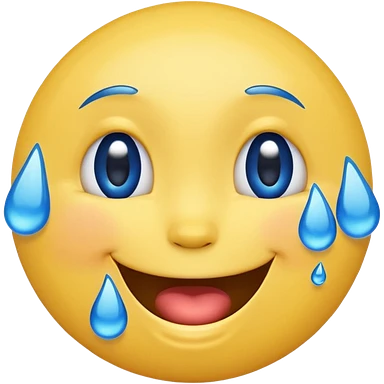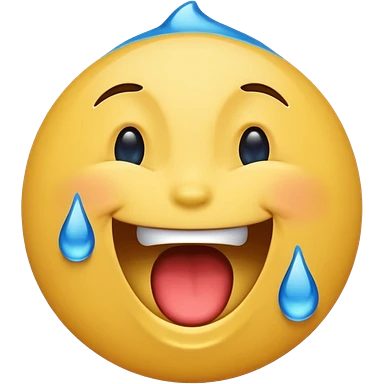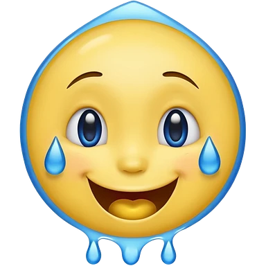 Emoji, yellow round laughing face, blue tears of joy on it. 2 big blue tears on each of the 2 cheeks emoji