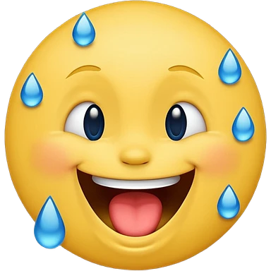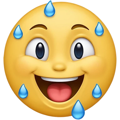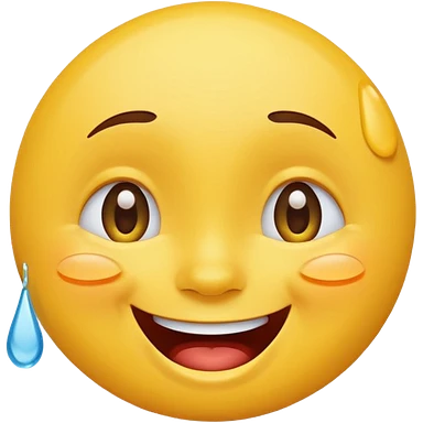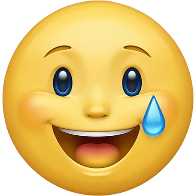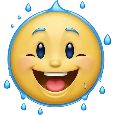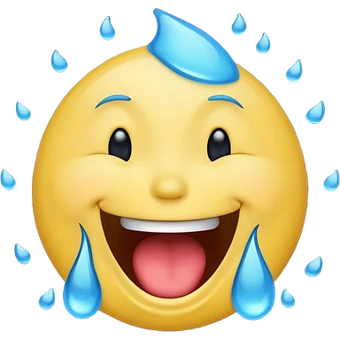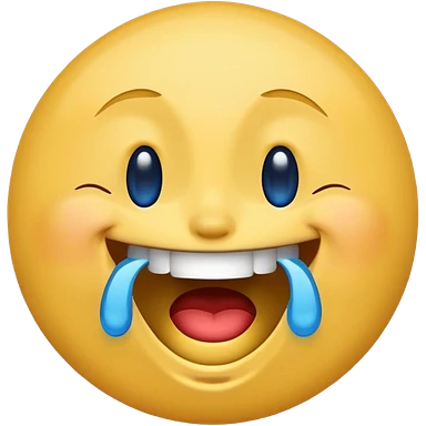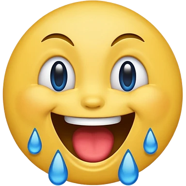 Emoji, yellow round laughing hysterically face, with blue tears of joy on it. emoji