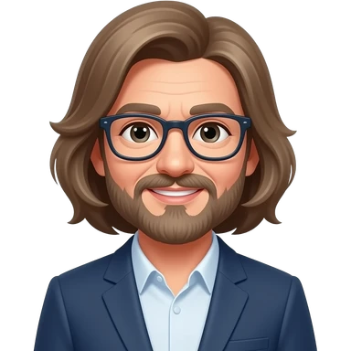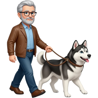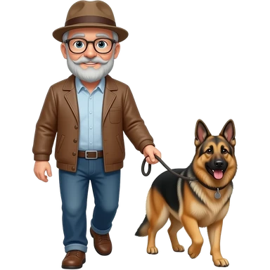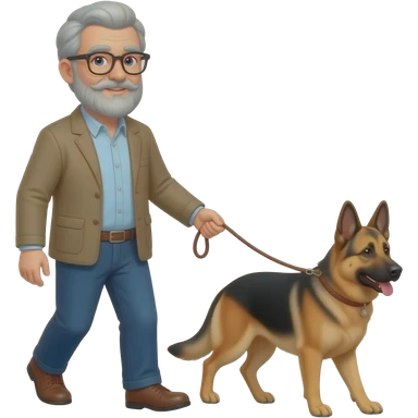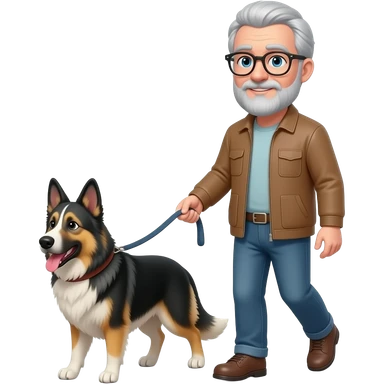 Emoji of an Older man with gray hair beard and emoji glasses Man with blue eyes walking shepski dog on a leash emoji