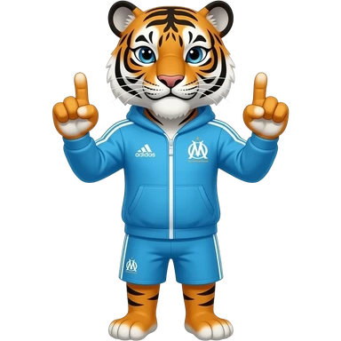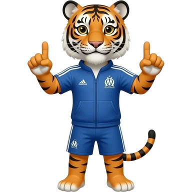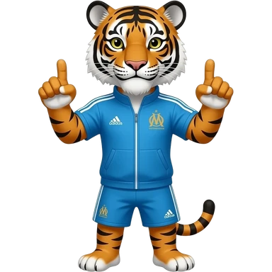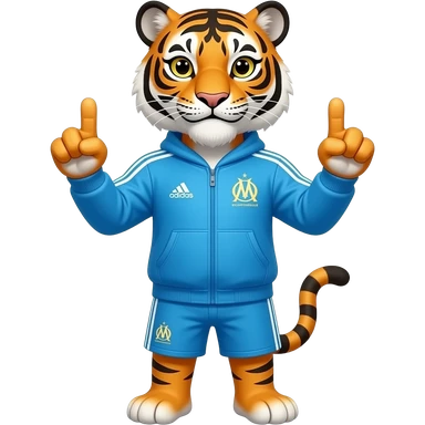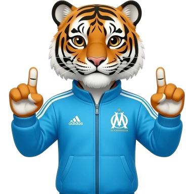 emoji tigre en survetement adidas couleur de l'olympique de marseille faisant le signe de JUL des deux mains pouce et index ouverts emoji