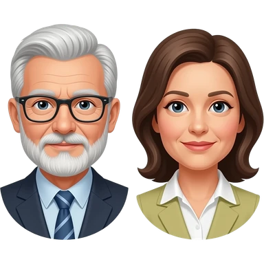 Emoji of an senior man with glasses and a beard mushtash and a dark blondemature lady emoji