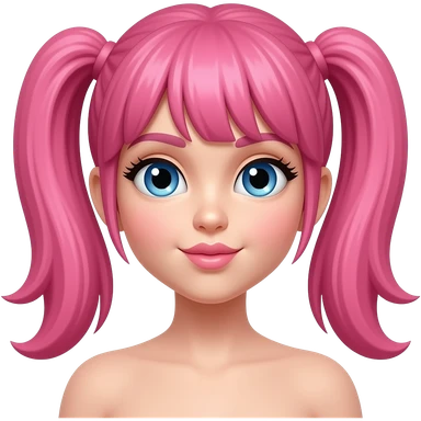 emoji color rosa con cabello rosita 2 colitas, tirando un besoo emoji