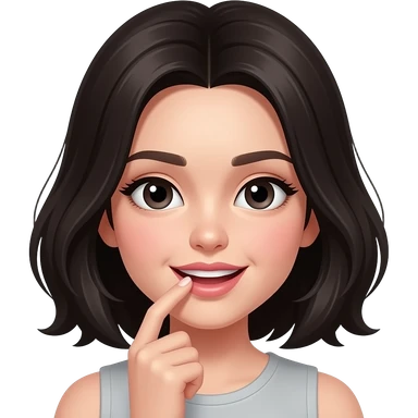 Emoji who bite her finder like she is flirting (dark hair & eyes) emoji