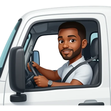 Emoji hombre conductor moreno SIN BARBA, camioneta color blanco emoji