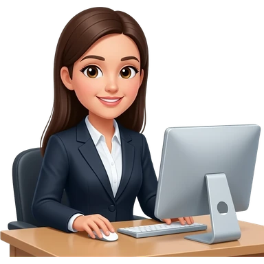 Emoji Mujer en oficina pelo largo totalmente liso y en computador emoji