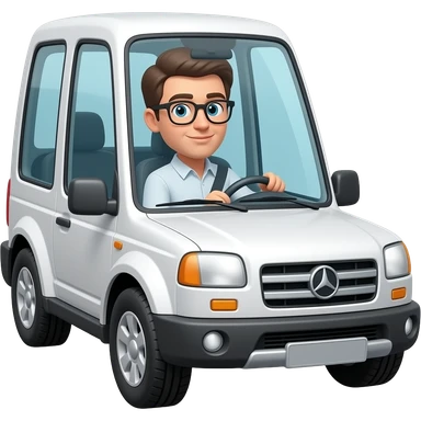 Emoji hombre moreno conduciendo camioneta blanca con gafas emoji