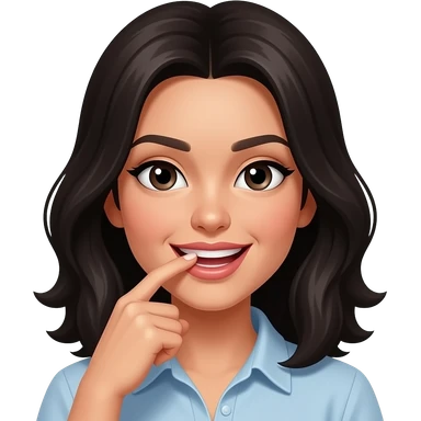 Emoji who biting down on finder like she is flirting (dark hair & eyes) emoji