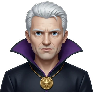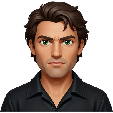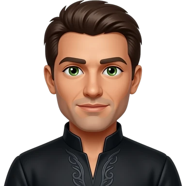 Iago from Otello with dark skin, green eyes, brown short hair, black tunic emoji