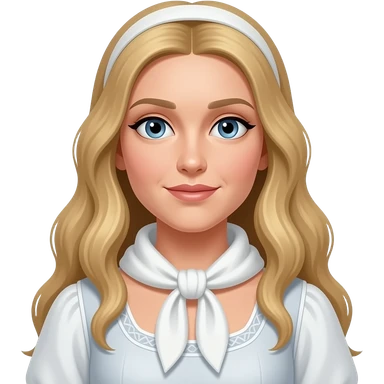 Desdemona from Otello with blue eyes, long blonde hair, white handkerchief dress emoji