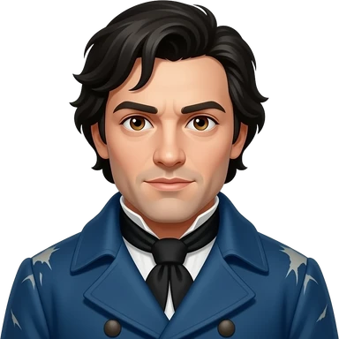 Marius Pontmercy from Les Mis with brown eyes, black hair, blue worn coat emoji