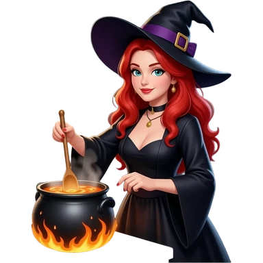 White redhead sexy woman witch cooking emoji
